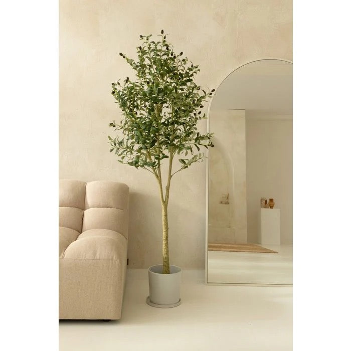 Wil jij ook genieten van een prachtige Olijfboom, maar houd je ze nooit levend? Dan is deze kunst Olijfboom van 180cm de ideale oplossing voor jou. Deze grote kunst Olijfboom komt ieder seizoen fluitend door en heeft alleen af en toe een goede stofbeurt nodig. Deze Olijfboom is de perfecte aanvulling in een Japandi interieur, maar met zijn slanke voorkomen past deze natuurgetrouwe topper bijna overal!