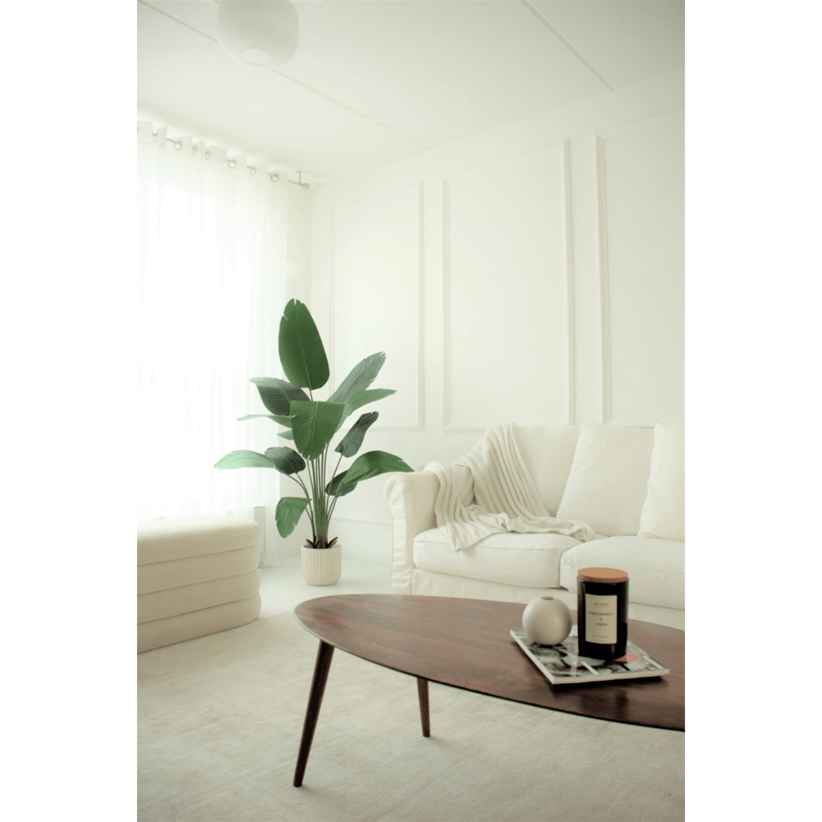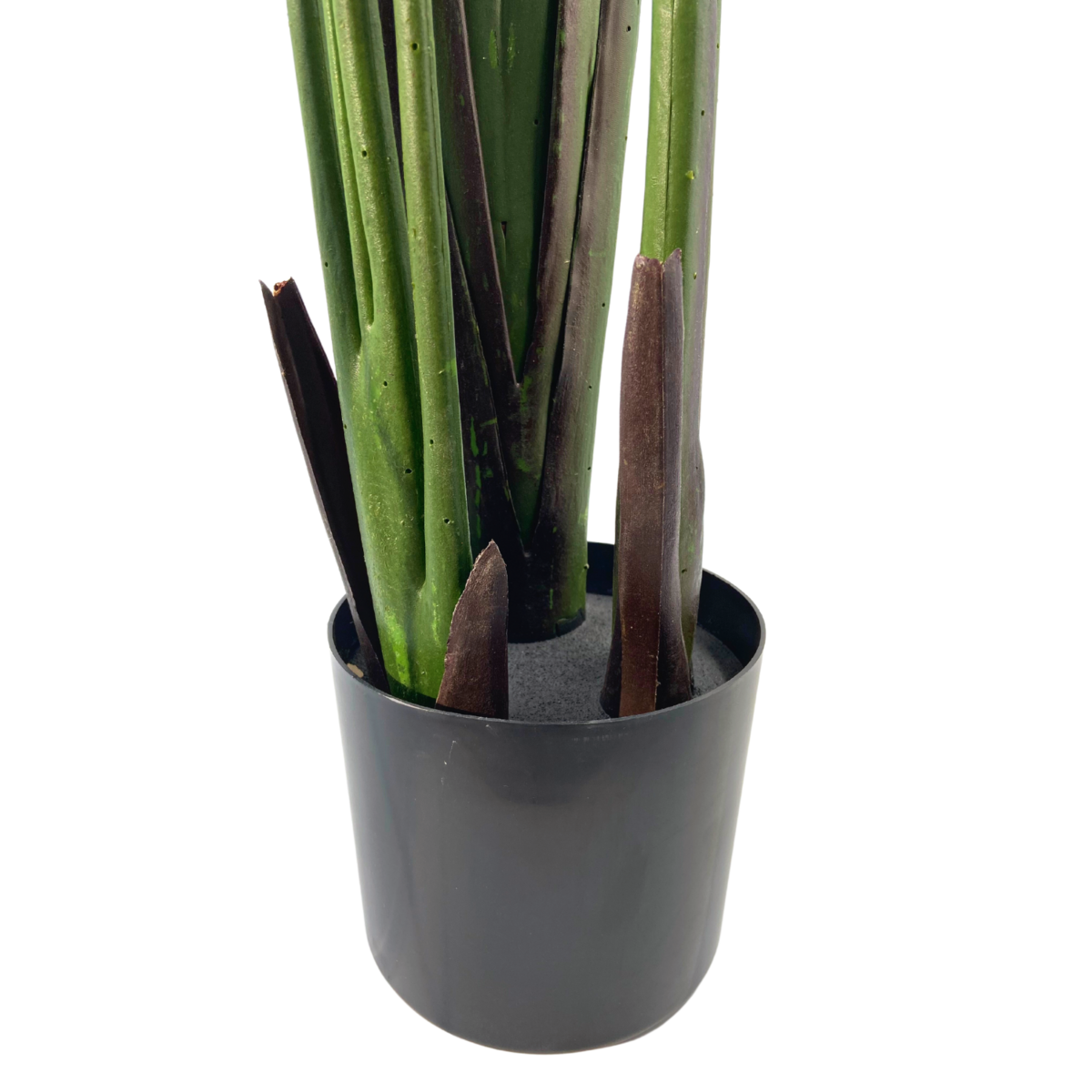 Deze Strelitzia kunstplant heeft met een hoogte van 1,8 meter precies de juiste lengte om een statement te maken in een ruime kamer. Met zijn weelderige groene bladeren voegt hij direct een vleugje natuur toe aan je interieur. Of je hem nu in de woonkamer plaatst of op kantoor, deze plant is een echte blikvanger. De Strelitzia wordt geleverd in een zwarte “kweekpot”.